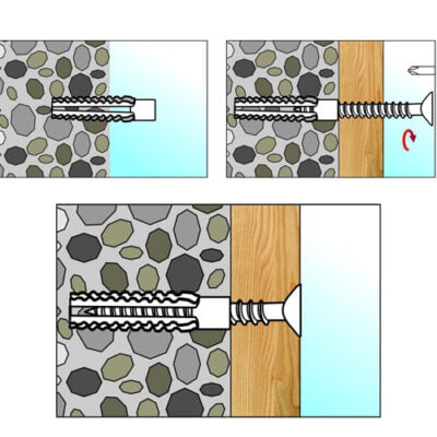 Використовується для монтажу різнотипних конструкцій до основи із газобетону, пінобетону, бетону, керамзитобетону, пустотілої цегли або повнотілої цегли. При необхідності монтажу дюбеля у тверді матеріали необхідне передчасне свердління, а якщо необхідно кріпити в пінобетон, то достатньо забити його молотком не прибігати до свердління.