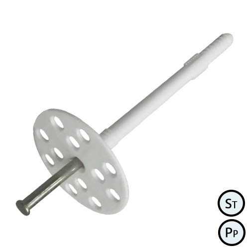 призначений для кріплення важких термоізоляційних матеріалів до різної основи: бетон, цегла. Виготовляється з ударостійкого поліпропілену.