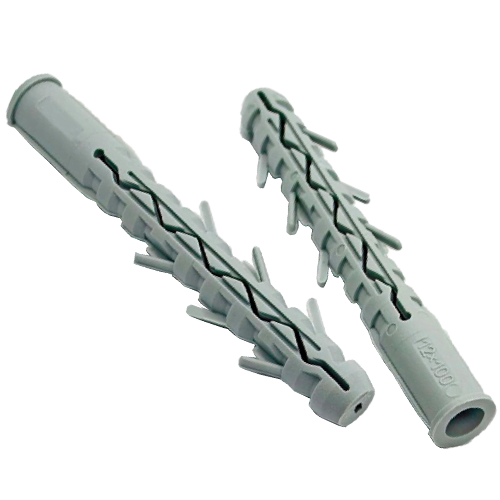 даний вид дюбелю призначений для монтажу в повнотілі основи, такі як: бетон, цегла, камінь, тощо. Має розпірну частину, яка розпирає дюбель в основі. Дюбель виконаний з нейлону. Для монтажу попередньо потрібно просвердлити отвір, відповідний до зовнішнього діаметру дюбеля.