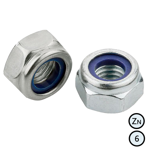 гайка з надійним самостопорним механізмом, призначена для забезпечення надійного з’єднання і запобігання самовільному розкручуванню. Виготовлена зі сталі в класі міцності 8,8 та предназначена для надійного з’єднання мехнізмів, кронштейнів, тощо. Нейлонове самоконтруюче кільце під час вкручування врізається в різьбу та надійно зафіксовує гайку на стрижні, болті або будь якому іншому кріпленні з метричним різьбленням