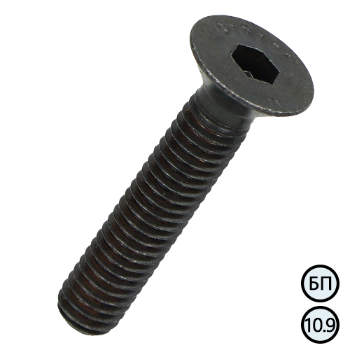 популярний вид продукції, який дозволяє виконати з’єднання не тільки надійним та міцним, а ще й естетично красивим за рахунок потайної головки, яка “ховається”, втоплюється в матеріал. Має шліц у вигляді внутрішнього шестигранника (INBUS), виконаний з високоміцної сталі у класі міцності 10,9.