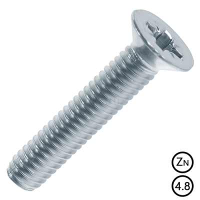 популярний вид продукції, який дозволяє виконати з’єднання не тільки надійним та міцним, а ще й естетично красивим за рахунок потайної головки, яка “ховається”, втоплюється в матеріал. Має хрестоподібний шліц, виконаний у класі міцності 4,8 та покритий цинком для кращої корозійної стійкості.