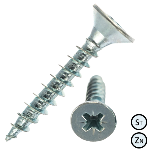 часто використовують в комплекті з дюбелями для монтажу в цеглі, бетоні тощо. За рахунок потайної головки, шуруп ховається в основу матеріалу та має естетичний вигляд.