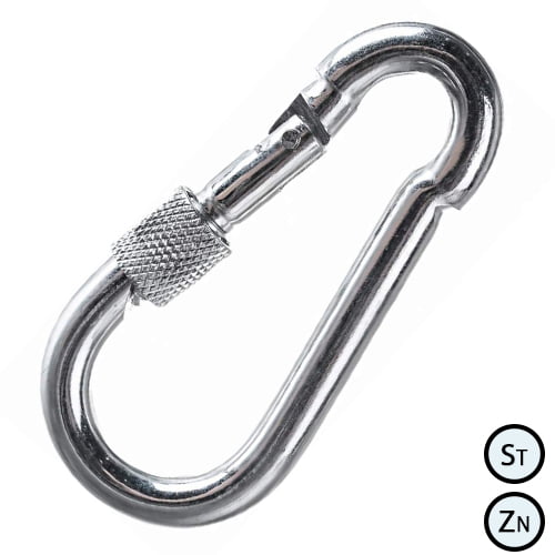 виготовляється з вуглецевої сталі, покривається цинком та оснащений пружинною клямкою.